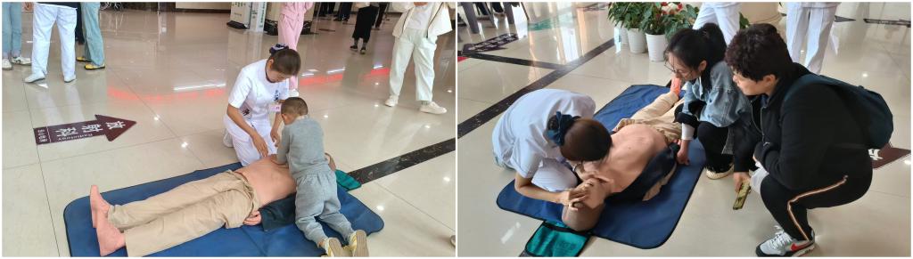 而最震撼人心的画面,莫过于心肺复苏演示。医护人员跪地示范的身影,诠释着对生命的最高敬意。按压的不仅是模拟人的胸腔,更是向全社会传递“人人学急救,急救为人人”的强烈信念。这堂生动的生命必修课,让“时间就是心肌,时间就是生命”的理念深入人心。