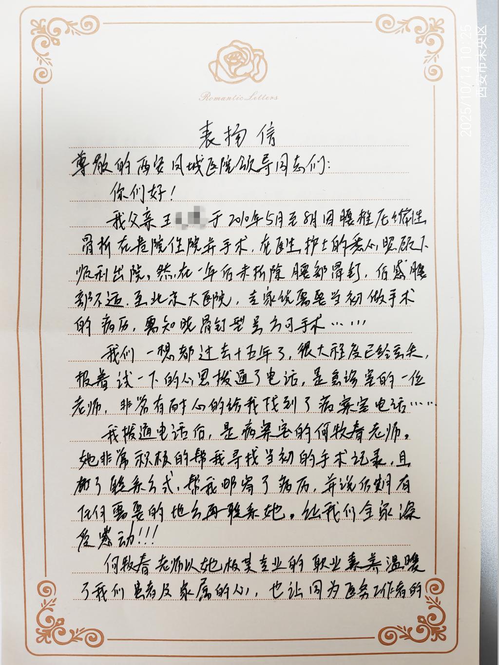 尊敬的西安凤城医院领导同志们:
