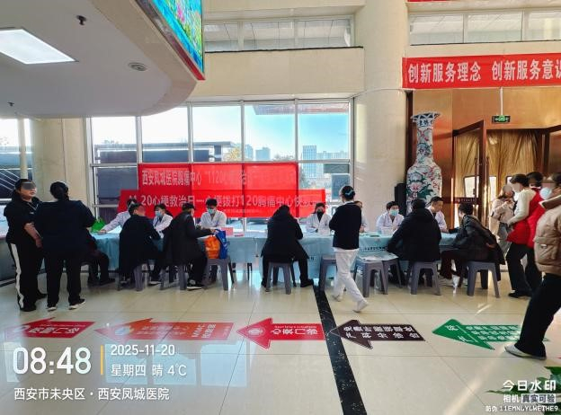 时间就是心肌,时间就是生命。2025年11月20日是第12个“中国心梗救治日”,今天,西安凤城医院胸痛中心开展了一场主题鲜明、内容丰富的健康公益活动。通过义诊与科普双线并行,旨在向公众传递“两个120”的核心理念:及时拨打120急救电话,把握黄金救治120分钟,为百姓心脏健康筑起一道坚实的防线。