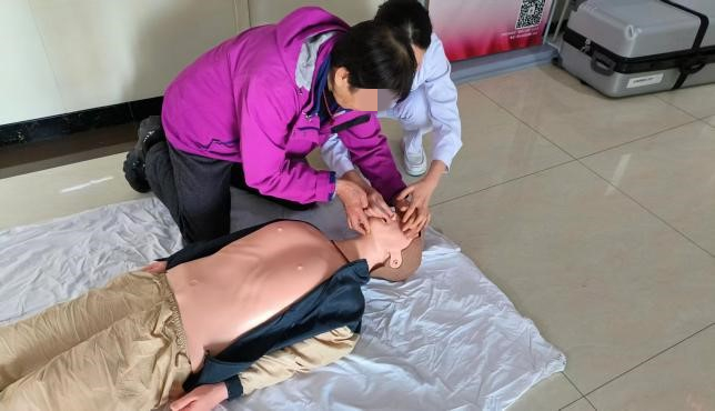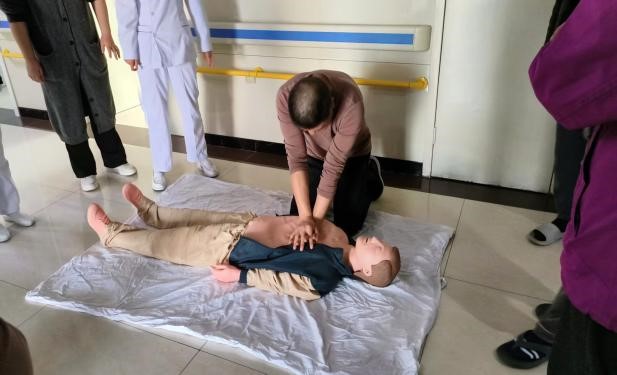 理论知识的灌输之后,是至关重要的实践环节。本次活动的“压轴大戏”——心肺复苏(CPR)演示与教学,由郝雪景主管护师精彩呈现。郝雪景护士以其专业的技能和清晰的讲解,一步步演示了如何判断患者意识、呼救、进行胸外按压和人工呼吸的标准操作流程。“手臂要伸直,用上半身的力量垂直下压”、“按压深度要达到5-6厘米”、“吹气时要看到胸廓隆起”……她一边操作,一边强调着每个步骤的要点和易错点。
