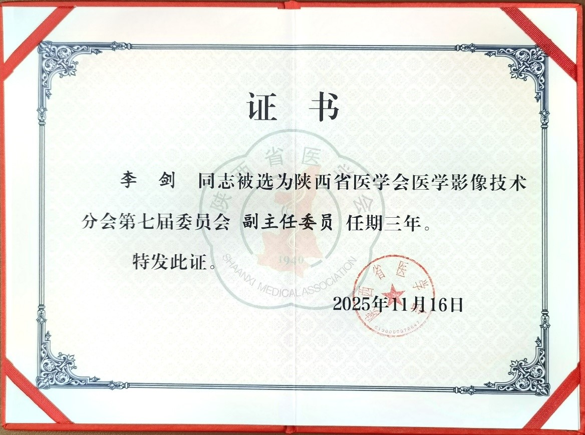 2025年11月16日,由陕西省医学会组织的陕西省医学影像技术分会第七届全体委员会在西安召开,西安凤城医院放射科李剑当选为陕西省医学会医学影像技术分会副主任委员,在此特感谢大家的认可,这是一份荣誉也是责任,有“位”更要有“为”……