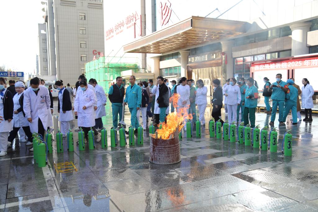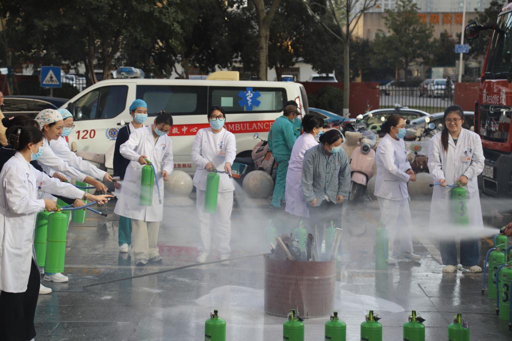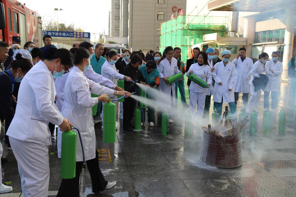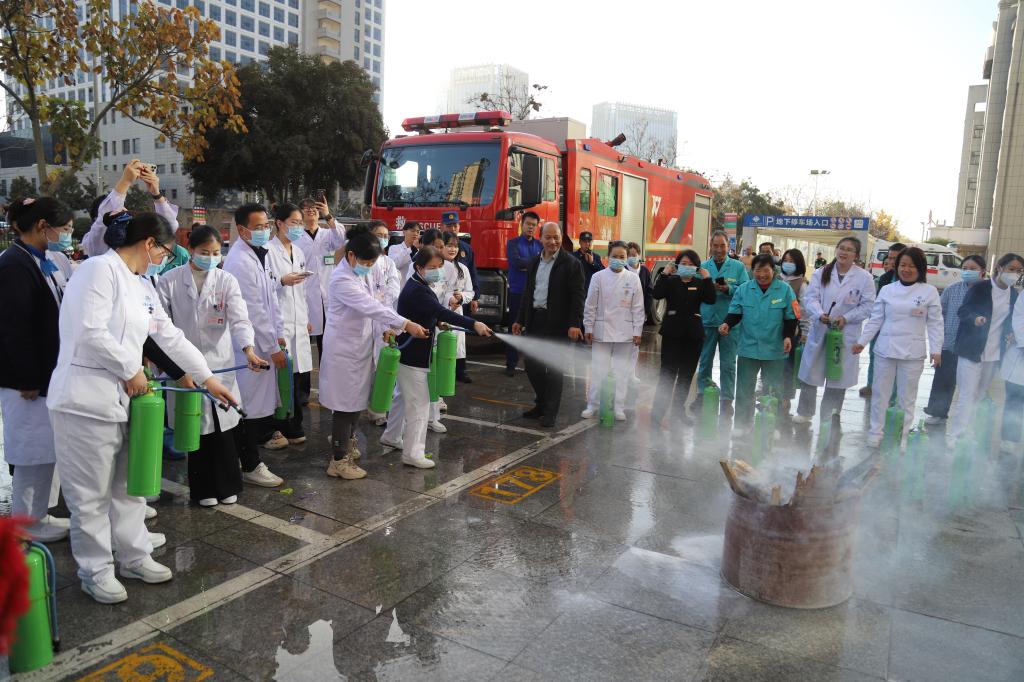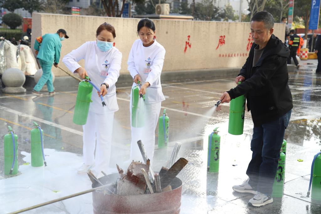 活动的最后环节,医院为职工准备了一场生动实用的消防安全知识“加餐”——“手把手”指导大家进行现场实操。“一提、二拔、三瞄、四压”,在后勤消防专业人员的指导下,医护人员轮流上阵,亲身体验了扑灭初期火灾的过程,有效提升了自防自救能力。