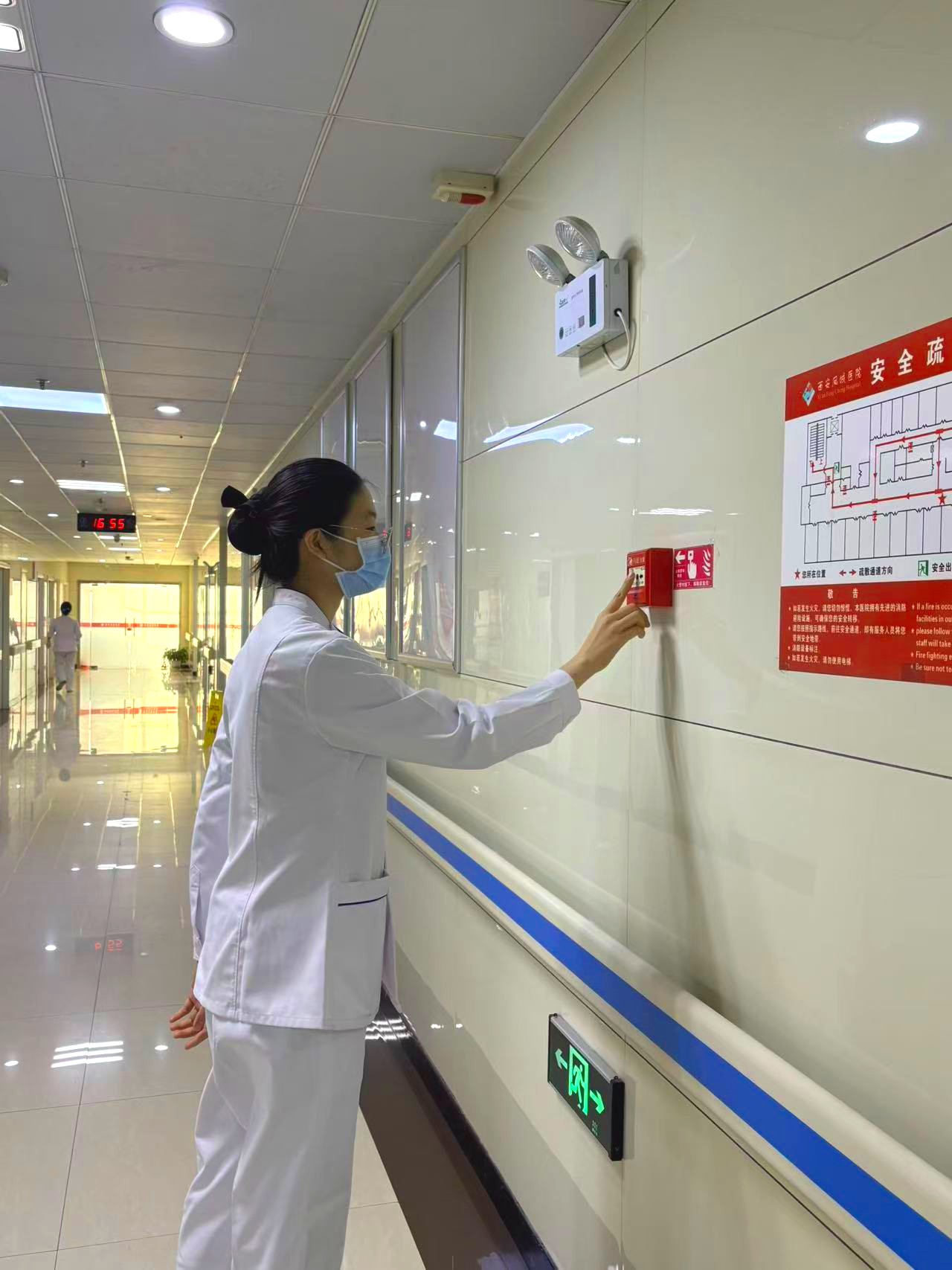 警报在第一时间拉响。正在十二楼病区巡查的护士凭借高度的职业警觉和扎实的培训基础,在发现火情的瞬间,一边大声呼叫,提醒区域内人员注意,一边迅速冲向最近的火警报警按钮,并同时用电话向院总值班、消防控制室及警务室进行了清晰、准确的报告。时间就是生命,责任重于泰山。她的果断处置,为后续救援赢得了宝贵的“黄金一分钟”。