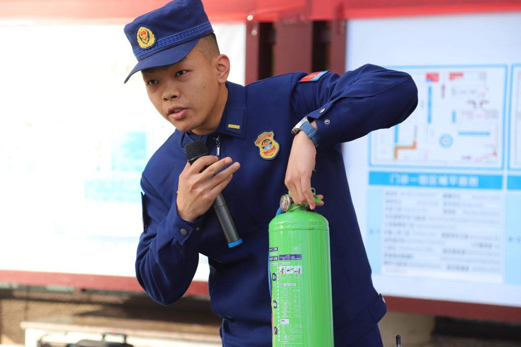 演练结束后,全体参演人员及观摩代表在指定区域集合。救援站陈班长为在场人员进行水基灭火器的主要用途,并现场展示使用方法。