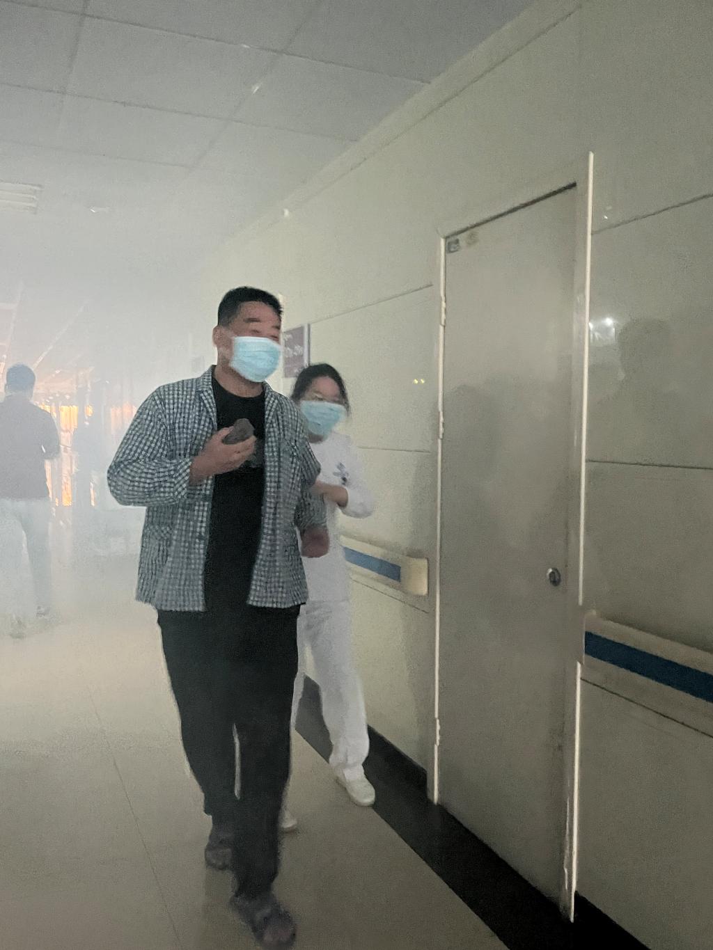 “人员疏散组,引导病患及家属从消防通道有序撤离!”