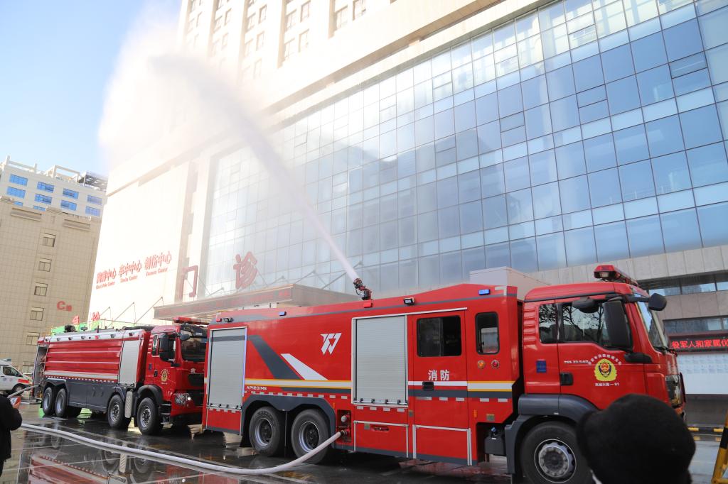 警笛长鸣,由远及近。接到报警的经开区消防中队凤城六路救援站的救援人员及两辆消防车在王政委的带领下,以最短时间抵达医院。全副武装的消防队员如神兵天降,迅速接管火场,架起高压水枪。在水龙的强力压制下,“火魔”被迅速控制并彻底扑灭,有效阻止了火势的进一步蔓延。整个演练过程衔接紧密,行动高效,达到了预期效果。