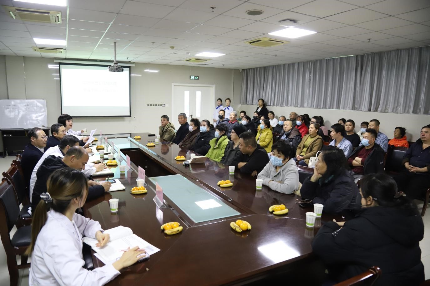 为进一步畅通医患沟通渠道,精准对接患者就医需求,持续提升医疗服务质量,2025年12月17日下午2时30分,我院第四季度工休座谈会在A楼9层会议室召开,座谈会由病员服务部主任孔莉主持。常务副院长张建荣、党总支书记李建荣、医教部主任王博、护理部主任翟丽娜、医保管理科主任叶粉琴、后勤安保科主任孙献秀与到会的37名患者及家属代表进行了座谈。
