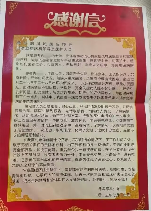 我们始终以患者为中心,用专业的技能和温暖的服务,为每一位居家患者保驾护航。让医疗有温度,让照护有深度,西安凤城医院家庭病床管理科,是您身边值得信赖的居家健康管家。