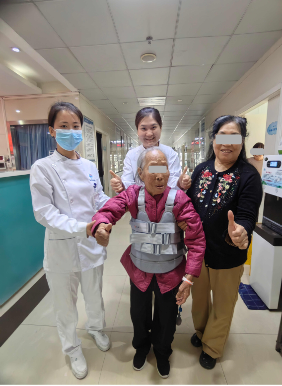 在全科医护的精心诊疗和护理下,术后疼痛即缓解,第二天,老人家的饭量和精神就有好转。查房时,家人高兴地对老人家说:“妈,你的救命恩人来看你啦”。