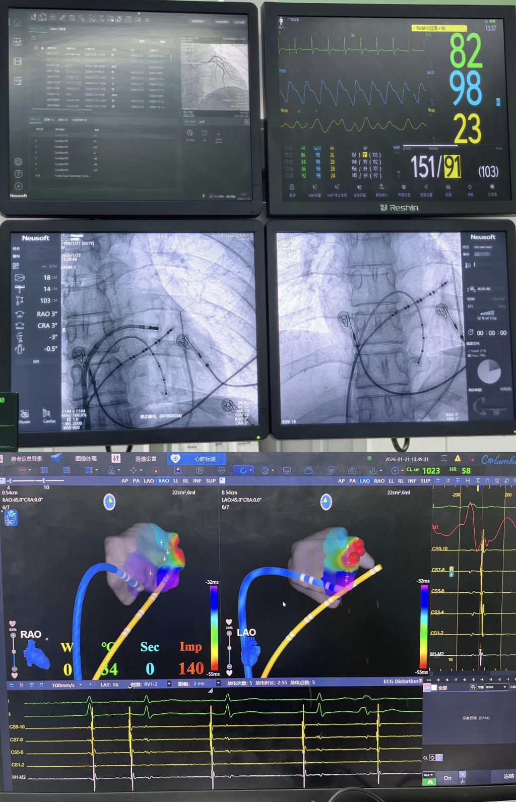 2、射频消融术:快速性心律失常,包括室上性心动过速、房扑、室早、室速等导管消融,房颤射频消融或脉冲电场消融+左心耳封堵术。