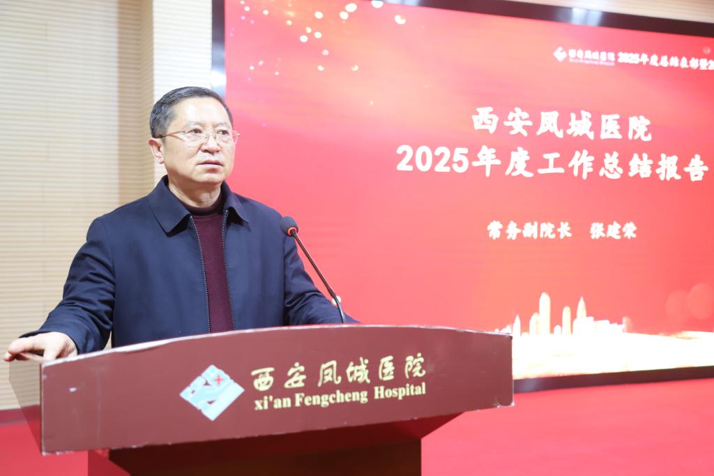 会上,常务副院长张建荣从全年目标任务完成情况、医院内涵质量、三甲创建、学科建设、医保工作、人才队伍建设、医院大安全工作等多个方面对2025年度工作进行了全面总结和回顾。他指出:2025年,面对医疗政策深度调整、医保支付改革持续深化等诸多困难和压力,全体员工凝心聚力,迎难而上,积极作为,各项重点工作扎实推进,实现了医院健康稳步发展。2026年,是我院实施第二个五年发展规划的收官之年,也是创建三甲医院的关键之年,我们要在上级卫生行政部门的领导下,积极适应医疗市场的新形势、新变化,以病人为中心,以质量安全为根基,凝心聚力、锐意进取,以更加饱满的热情、更加务实的作风,全面推进医院高质量发展!