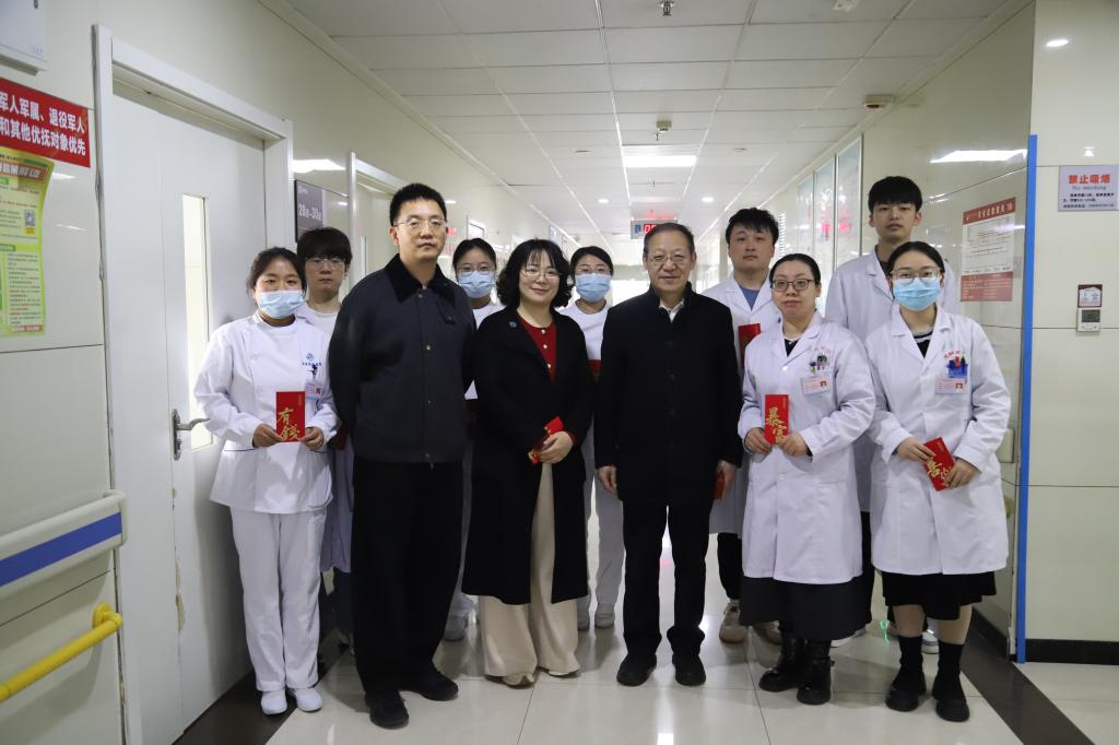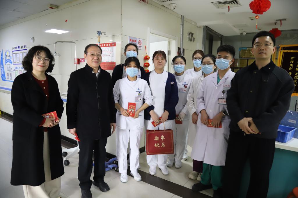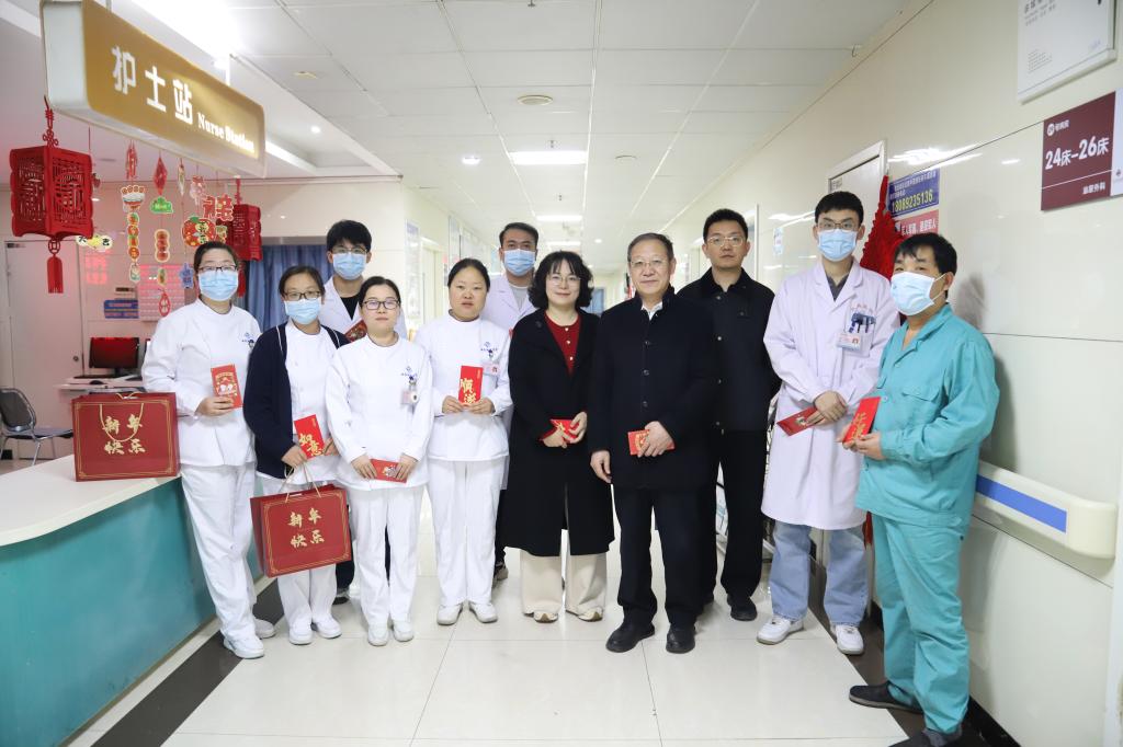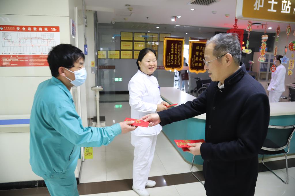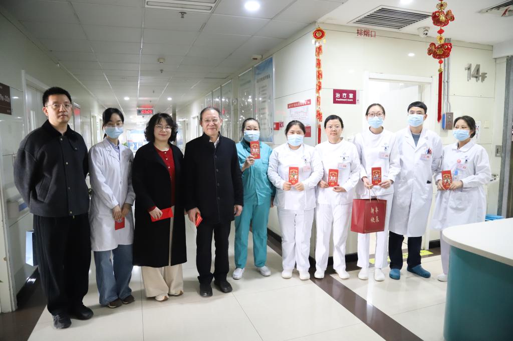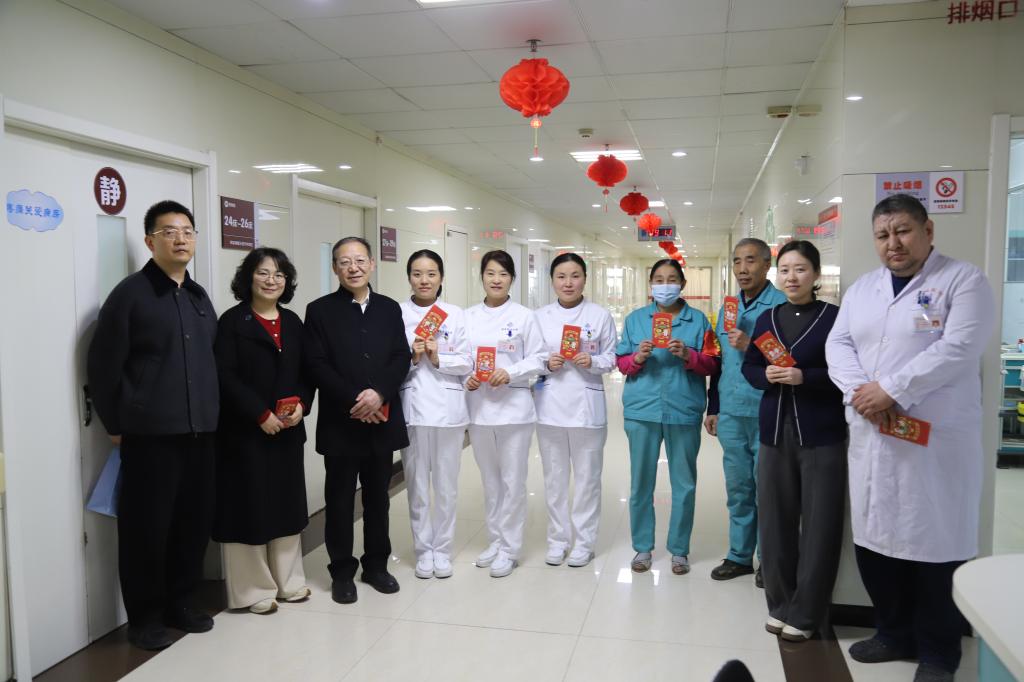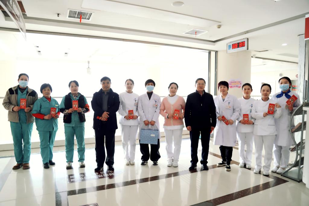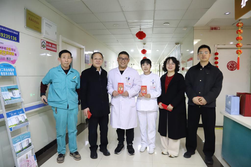 2026年2月17日(农历丙午马年正月初一),院党总支书记李建荣、常务副院长张建荣、院长助理王茜、财务科科长夏卫平、信息科主任辛乐以及疾控科主任田张黎开展春节慰问活动,向春节期间坚守岗位的医务人员与后勤人员送去关怀与祝福。