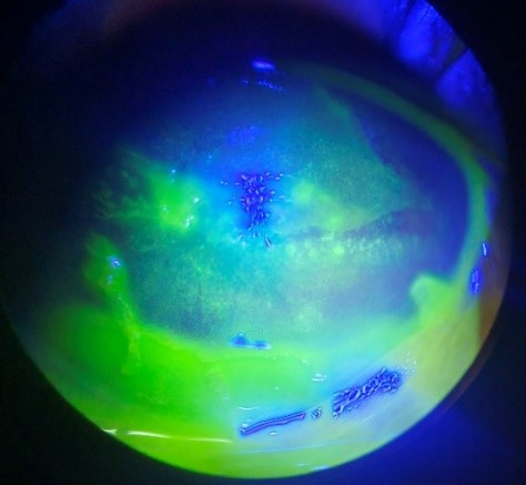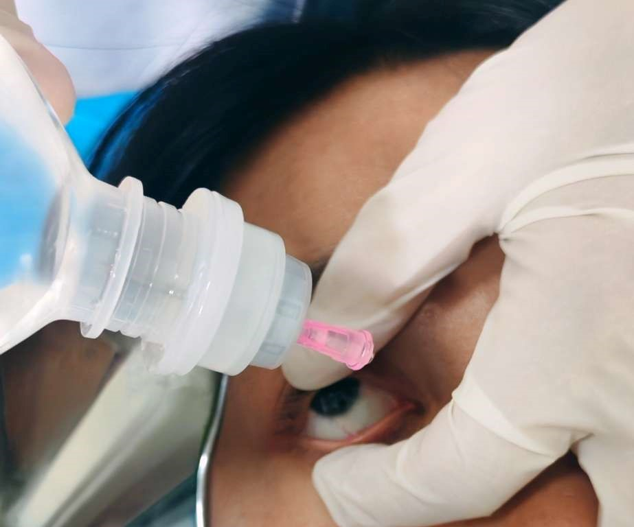 “医生,医生,快看看我的眼睛”伴随着急促慌恐的呼救声,一位女性手捂左眼来到眼科诊室。患者两小时前工作时不慎将酒精喷入左眼,现在刺痛难忍,视物模糊,眼科主治医师杨建玲查看患者左眼睑红肿,睁眼困难,眼泪不断流淌,立即为患者滴用表面麻醉药,减轻患者痛苦,裂隙灯检查发现患者左眼球结膜混合充血,角膜表面糜烂,大片上皮剥脱并悬挂于角膜表面,全角膜几乎无正常的上皮组织,眼底模糊无法窥清。