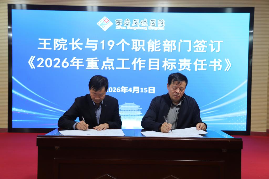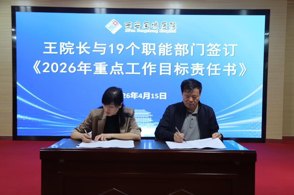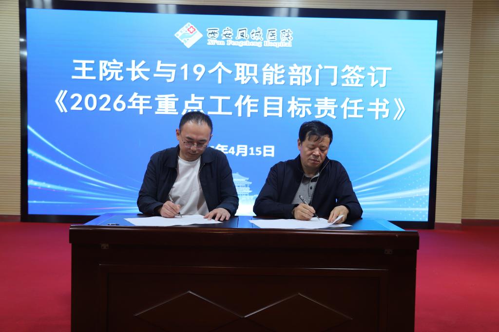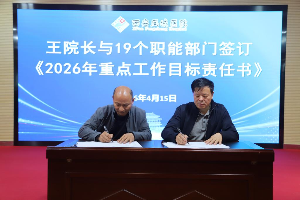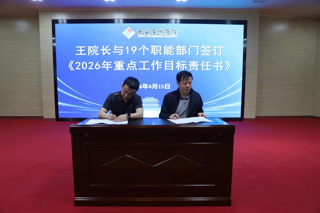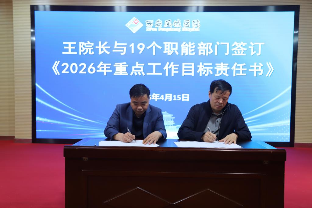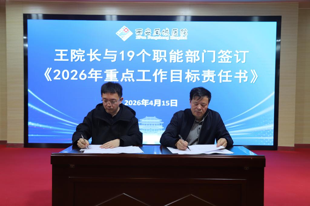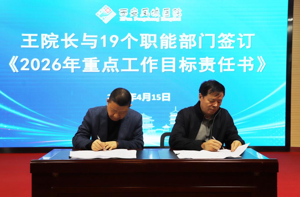 会上,首先由院办公室主任崔瑛通报了2025年度机关目标管理工作情况,她从2025年目标管理开展的基本情况、全年目标任务完成情况、取得的成效与存在的问题三个方面进行了详细的通报。总体来看,2025年机关目标任务完成情况良好,总体完成率达92.92%。马院长对《2026年医院重点工作细化方案》进行了详细的解读。王院长与19个职能部门负责人签订了《2026年重点工作目标责任书》。