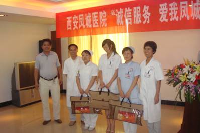 2011年6月,正值世园会在西安举行之际,也是卫生部要求全国卫生系统开展“三好一满意”活动,西安市未央区文明办、未央区卫生局党委、卫生局联合号召“创建人民群众满意医院”活动之时,为了更好的激发我院工作人员的积极性,积极的投入到上述活动中来,医院于14日下午在七楼会议室举办了“诚信服务、爱我凤城”主题演讲比赛。