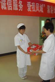 另一方面,他们又用鲜活的事实讲述着凤城人以诚信为本,患者至上,想病人之所想、急病人之所急,不分上下班时间,齐心协力,一次次从死神面前将患者拉回时,患者和家属深受感动给工作人员带来的欣慰。同时也表现出,凤城医院以诚信创造品牌,严格执行相关的法律法规和十五项核心制度,赢得患者信任,百姓好评,同行认同,国家认可,成功获得二级甲等医院、全国爱婴医院、中国显微外科培训基地等光荣称号时的自豪感。