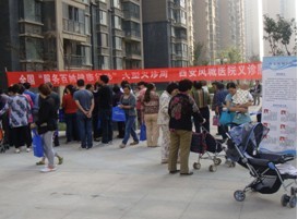 10月14日,医院还组织多名专家携带“全国服务百姓健康行动”义诊活动进社区的会标到凤城十一路首创国际对小区的居民进行了常见病、慢性病的咨询、疾病的初步诊断和一般治疗,普及医学常识和健康知识,倡导健康生活方式。发放宣传材料460余份,为120多名群众现场进行卫生咨询,解疑答难,受到小区居民的热烈欢迎。