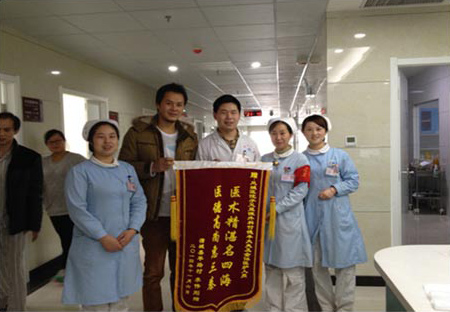 患者李某,在工作时意外被油漆火焰烧伤左手、左面部,当时烧伤创面起泡,大部分表皮缺损,感觉疼痛难忍。在家人陪同下,驱车2小时慕名前来我院。接诊医师付德丰及时给予止痛、创面处理。为了减轻病人顾虑,向患者详细介绍了治疗方案及预后。经过2周余的治疗,创面全部愈合,患者对治疗效果非常满意。值出院之际,向付德丰医师送来锦旗表示感谢。付德丰医师说:“烧伤有别于其他创伤疾病,其病程长,创面愈合慢,易出现感染。烧伤换药对患者来说是一个非常痛苦的体验过程,为了减轻换药疼痛,每次换药时先用生理盐水充分浸泡,局部应用表面麻醉剂浸润。能收到锦旗很高兴,从根本上来说是患者对我工作的信任与肯定!”。