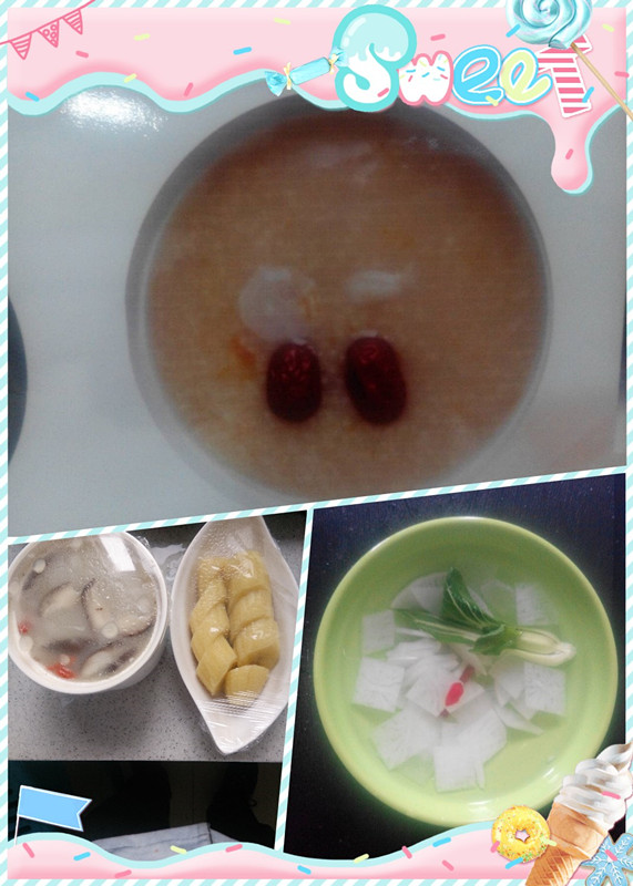产后、术后返回病室,漫无边际的困倦袭来,但生产过后的全身不适感与腹部的宫缩痛、胃里空空如也猫抓般的的难受;使你想睡又无法安睡。这时配餐室免费提供热乎乎的米汤、萝卜汤,喝下后顿时觉得浑身暖暖的,爱的温度就是那碗暖胃又暖心汤的温度。