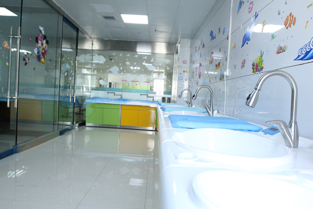小宝宝去洗澡沐浴了,全新的新生儿洗浴护理中心,设置水温37-40度;但在每位宝宝洗浴时,护士阿姨依然会用水先淋自己的手臂内侧来测水温,以免意外发生。这里爱的温度是护士阿姨手臂内侧的感觉。