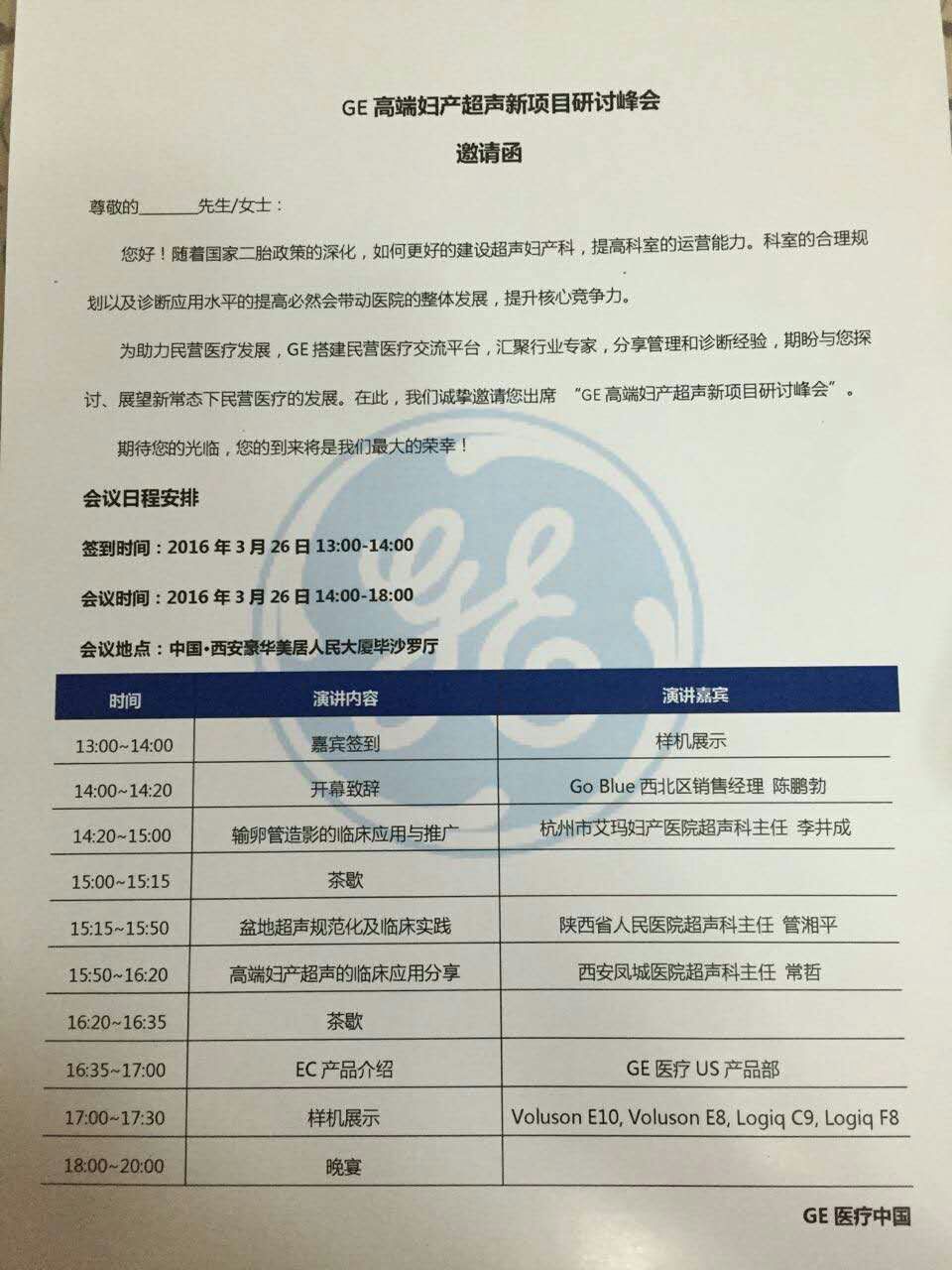 三月二十六日下午,美国GE公司承办的高端妇产超声新项目研讨峰会在西安人民大厦隆重举行。