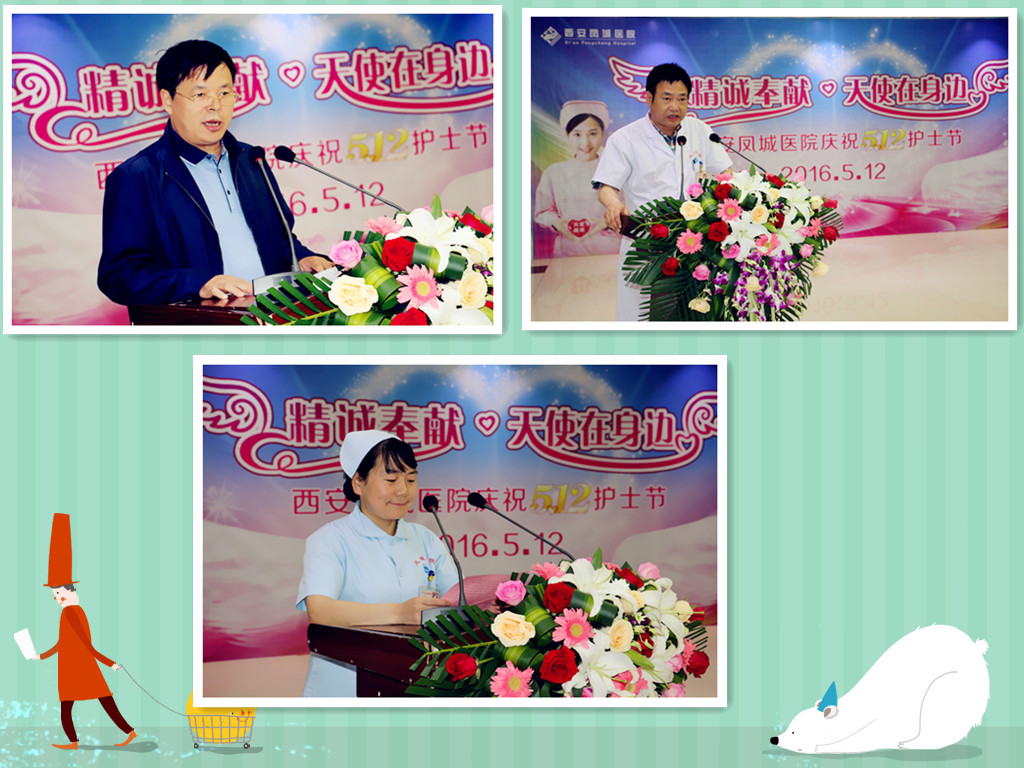会上,院长王保山、业务副院长陈建军、总护士长蔡颖分别向全院护士兄弟姐妹们表示了节日的祝贺和亲切的慰问!并向辛勤工作在临床一线无私奉献的“白衣天使”们表示崇高的敬意!