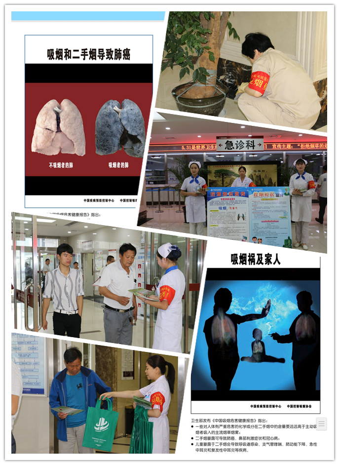今天,我院疾控科、病员服务部、宣传科和安保部共同组织在院内门诊大厅开展“无烟日”宣传活动,向就诊患者及家属宣传医疗卫生系统全面禁烟,我院为“无烟医院”,吸烟和二手烟的危害,戒烟的好处、方法和技巧等。通过宣传咨询等活动,强化公众控烟意识,巩固我院戒烟成果,进一步提高全民戒烟积极性和主动性。