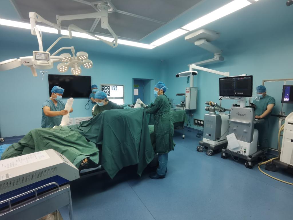 利用高科技机器人完成手术,优势是手术中的定位非常准确,可以达到毫米级,创伤可以明显缩小,除了髓腔的少量出血外,皮肤软组织的切口很小,出血也很少。而如果采用传统手术方式的话,术中出血量可达800毫升以上,非常不利于恢复。