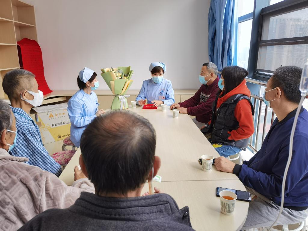 2021年10月13日,是再普通不过的一日,但是对于王女士来说,却是生命中非常重要又值得庆贺的日子,半年之久的8次周期性化疗顺利结束了,恢复的非常好,要出院了~因此普外科召开了一次别开生面的工休座谈会,会议特别邀请了护理部---翟丽娜主任,同时参加本次座谈会的还有普外科相同疾病患者6名以及科室部分护士。
