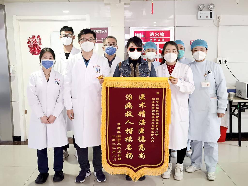 近日,我院重症医学科二部有位病人家属满怀感激之情回到病区,为马海洋主任及他的团队赠送锦旗及亲自做的手工。