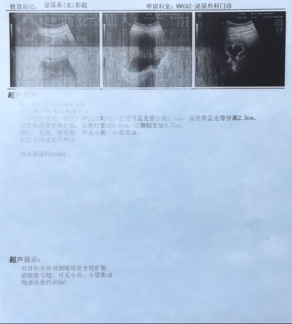 尿频尿急在普通老百姓眼中一直是老年男性专属名词,可65岁王阿姨已被尿频,排尿困难困扰好些年,转辗很多西安大医院均不得其因。今年三月,王阿姨自觉排尿困难较前加重,下腹部感明显憋胀,并且已经出现夜间漏尿的情况,这让一直爱干净的王阿姨非常苦恼尴尬,做泌尿系B超提示上尿路积水,肾功能也受到了影响,于是王阿姨来到离家相对较近的西安凤城医院,想好好检查治疗一下。