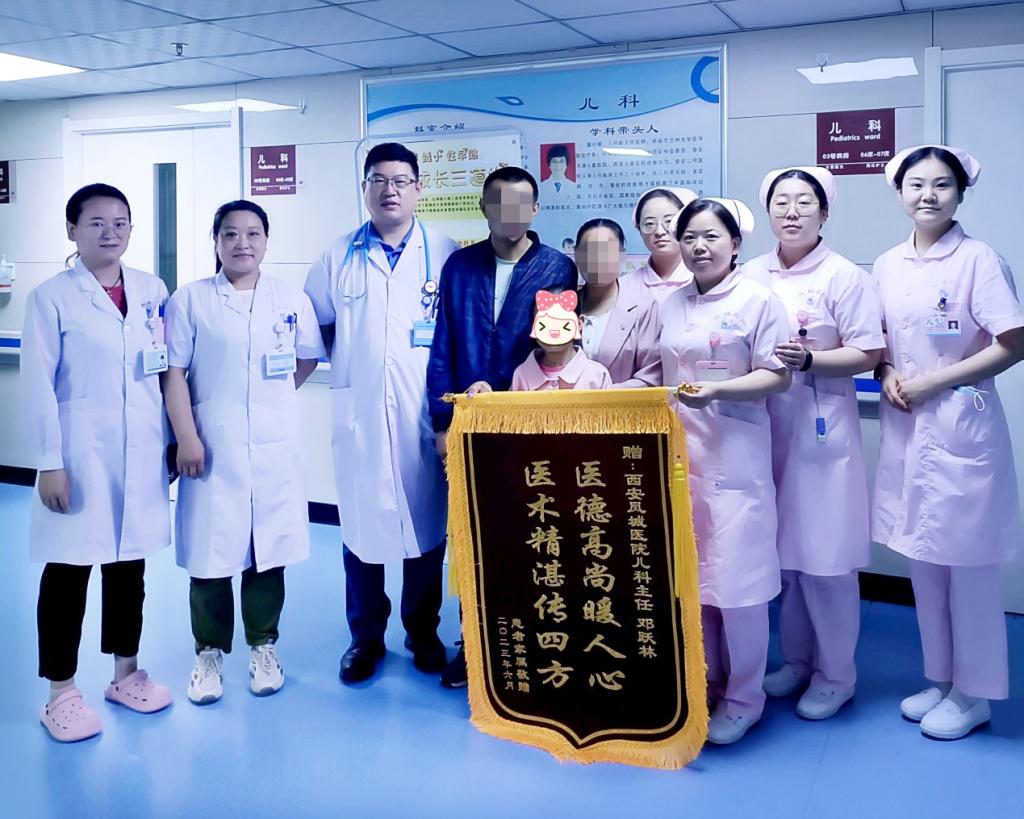 住院期间严密观察用心护理,患儿无不良反应,经过查体及相关检查,各项指标正常,符合出院要求,两天后出院。出院时家长为了表示对邓跃林主任高尚医德及精湛技术,特此赠送锦旗表示感谢!