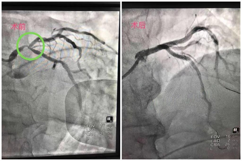 该病例记录的是一位老年男性,反复发生心绞痛,冠脉造影见左主干远端狭窄90%,回旋支开口及近端狭窄80%,前降支近端狭窄70%,右冠脉弥漫性狭窄50-80%。对于这种风险高,难度大的无保护左主干合并分叉病变及钙化重的病变,建议行冠脉搭桥术,但患者及家属愿承担风险,坚持要求冠脉介入微创治疗。在主动脉球囊反搏保护下,行裙裤(culottes)双支架术,并择期处理右冠脉病变。术后一年,复查冠脉造影见左主干、前降支、回旋支原支架通畅,无狭窄,心功能正常,患者恢复良好。