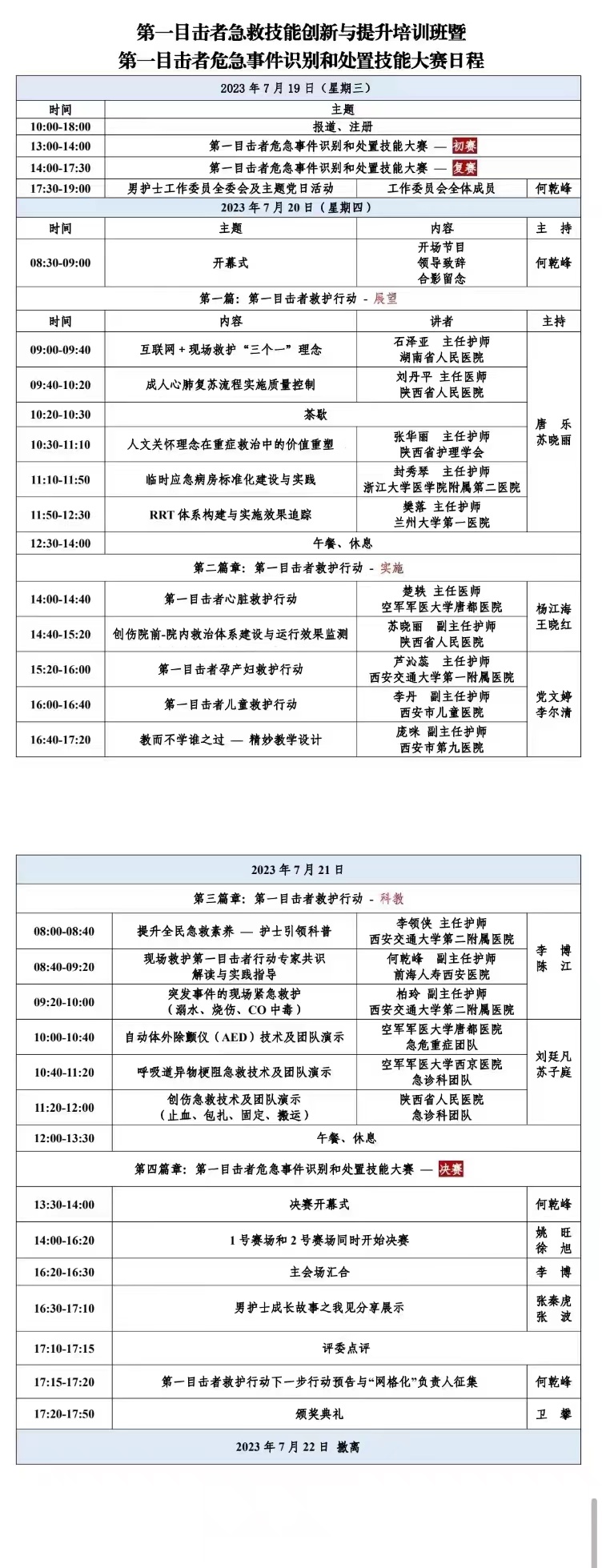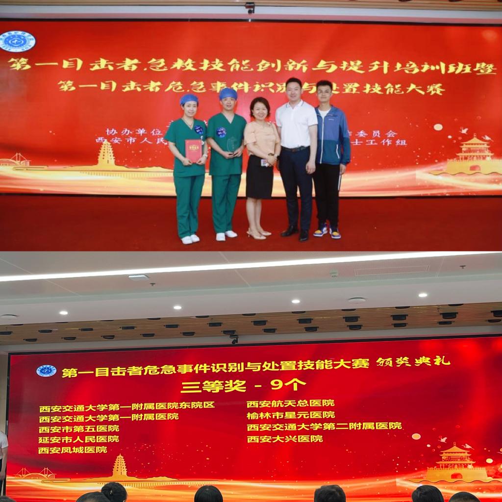 为提升专业人员急救技能传播能力及全民急救素养,进一步贯彻落实健康中国2030规划纲要,有效提升院前及院内公共区域危急事件的识别和应急处置能力。陕西省护理学会于7月19日-22日在古城西安举办了“第一目击者急救技能创新与提升培训班”暨“第一目击者危急事件识别和处置技能大赛”。经护理部推荐,由我院急诊科靳娜护士长带领杨佳祥和郝嘉莹积极报名参加了此次培训班和技能大赛。