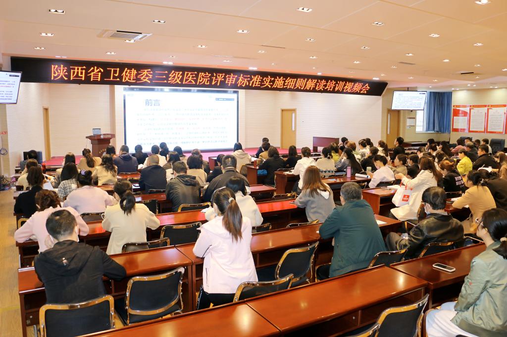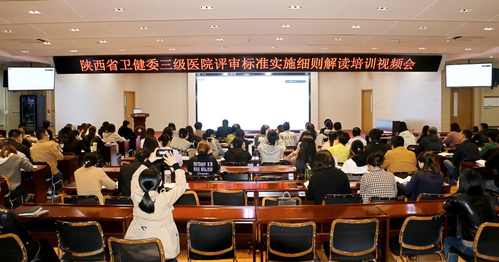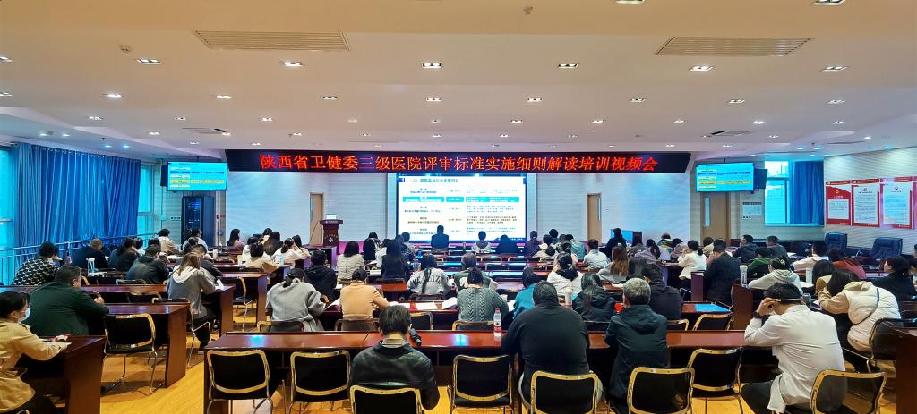 按照省卫健委《关于召开三级医院评审标准实施细则解读培训视频会的通知》精神,2023年10月 18日~20日,我院在F楼5层学术报告厅成功组织参加为期三天的《三级医院评审标准实施细则解读培训视频会议》。院领导高度重视,精心部署,精密安排,为保证培训效果,要求全院各科室选派1-2名人员脱产参加培训会议,并严格考勤制度。以院领导为首,各职能部门、各科室主任、护士长带头的100多名员工参加了培训会。宣传科进行了全程录课,以便后期全员学习,举一反三。