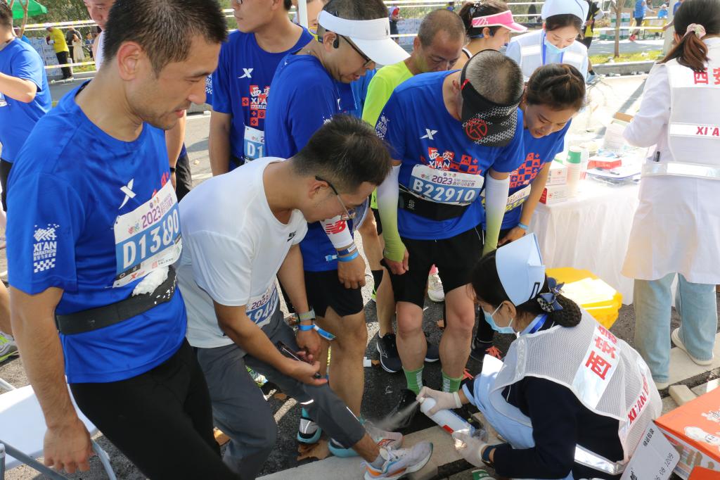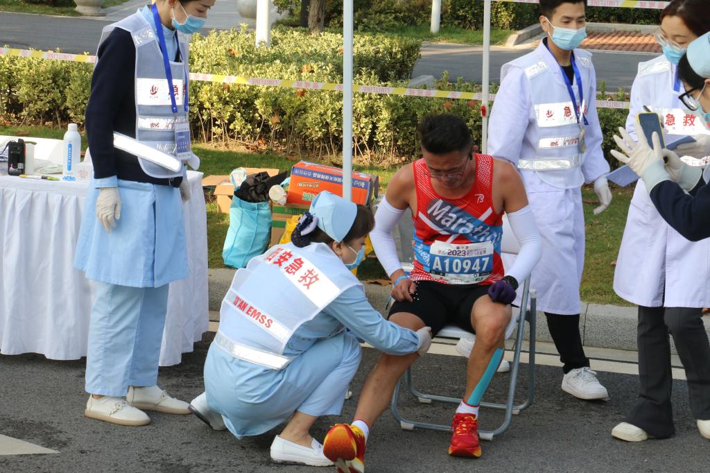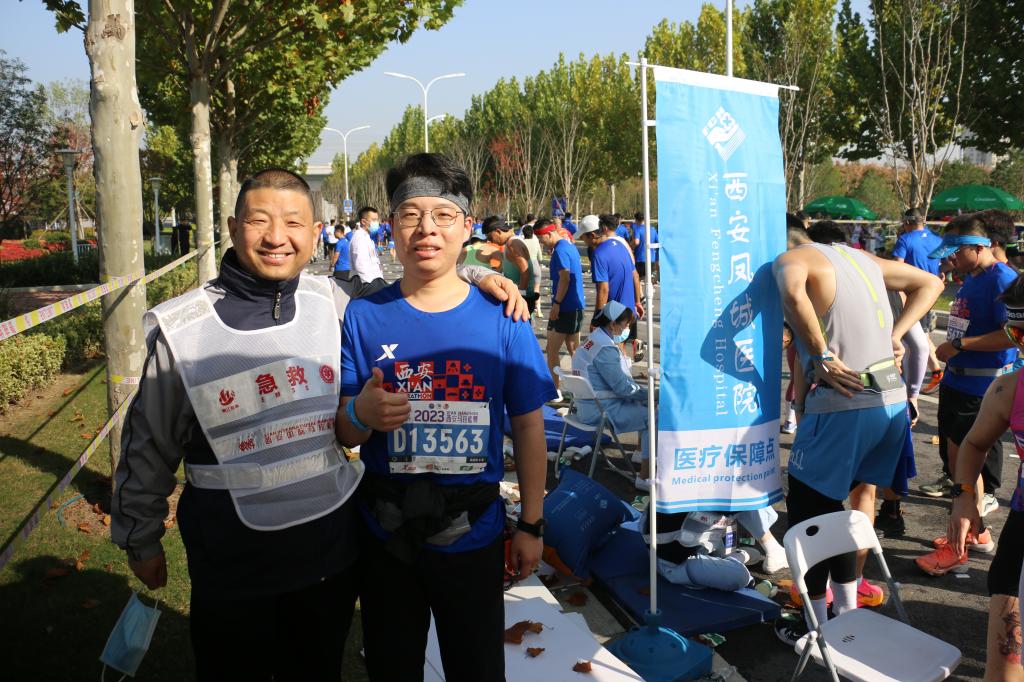 10月29日7点30分,2023西安(星河湾)马拉松赛鸣枪开跑,我院作为医疗保障队于凌晨五点在23公里处医疗保障点集结完毕,为参赛选手进行医疗救治和医疗保障。