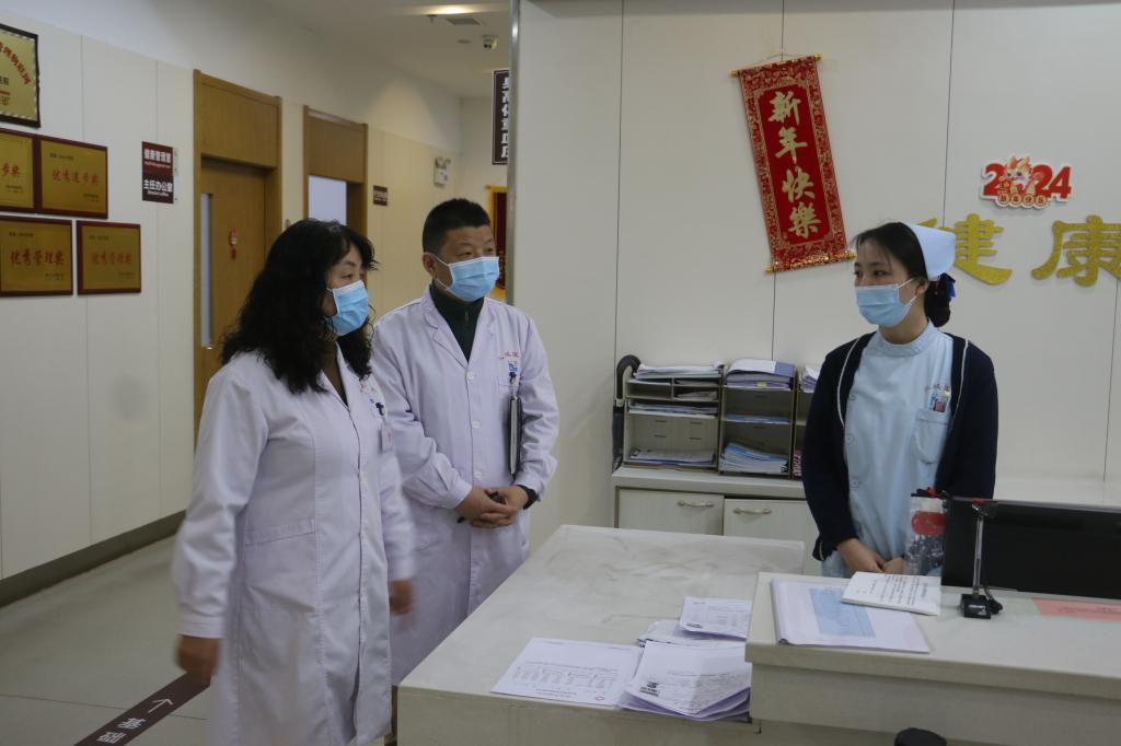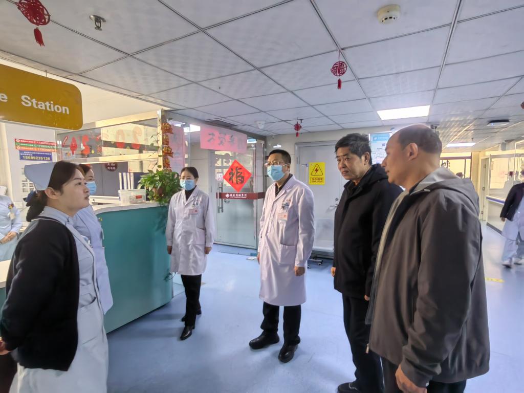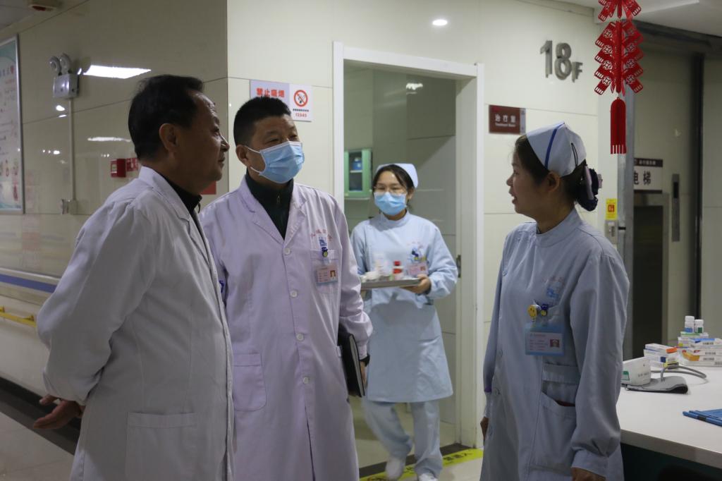 2月18日,春节收假第一天,院领导班子前往各科室慰问节日期间坚守岗位和节后按时到岗的员工,并了解科室节日期间的工作和节后员工到岗情况。