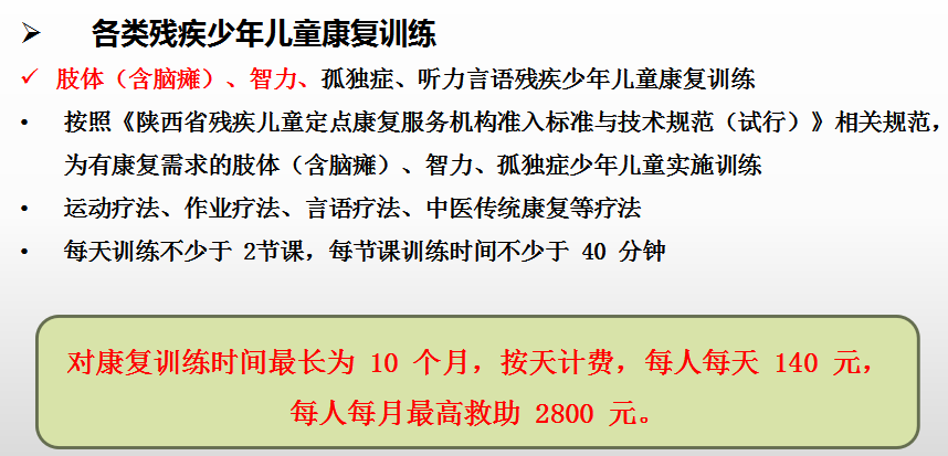 诊断为孤独症、智力障碍、肢体残疾的孩子,不需要办理残疾证即可享受每年最高28000的训练课程补助,西安市户口的还可享受每月最高300元的送训费。