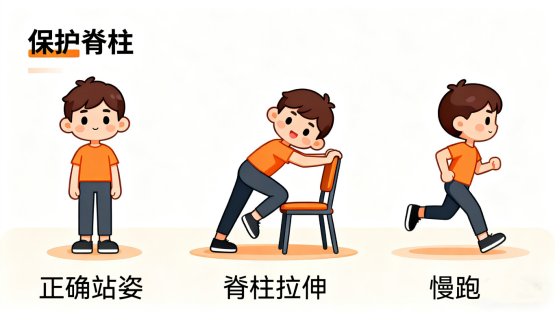 4、适度运动:游泳、瑜伽、靠墙站立等都是锻炼腰背肌肉、增强脊柱稳定性的好方法!除了这些,快走、慢跑等有氧运动也能增强整体体质,对脊柱健康也很有帮助。