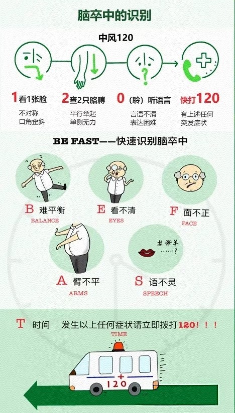 三、另外,要警惕早期症状并及时就医。脑中风发病前常出现突发头晕头痛、单侧肢体麻木无力、言语不清、视物模糊等症状,一旦出现上述情况,需立即拨打急救电话,尽快送往就近有救治能力的医院。脑中风救治黄金时间为发病后4.5小时内,及时溶栓或取栓治疗,能大幅降低致残率和死亡率。