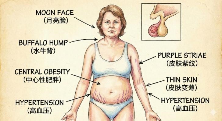 促肾上腺皮质激素瘤:导致库欣病,表现为面部肥胖、皮肤变薄、体重增加等症状。