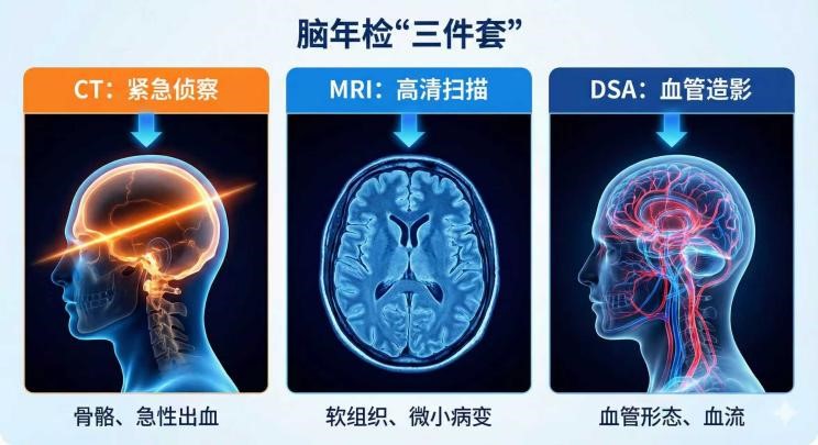 一、脑年检"三件套":各司其职查什么?