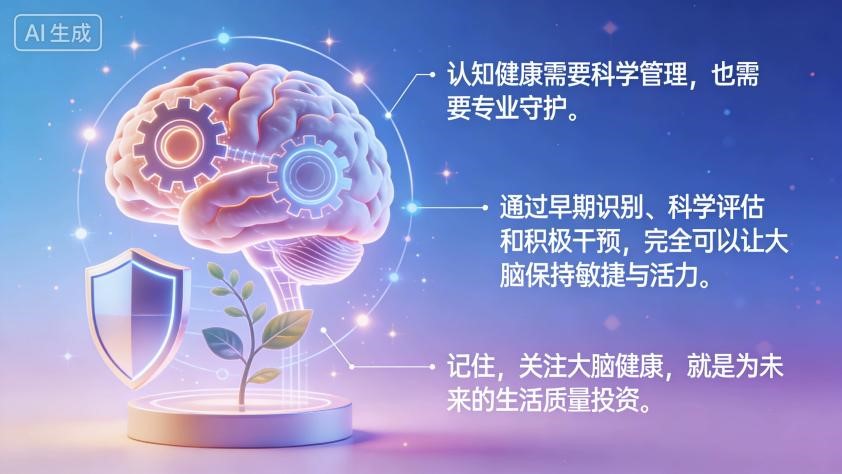 认知健康需要科学管理,也需要专业守护。通过早期识别、科学评估和积极干预,完全可以让大脑保持敏捷与活力。记住,关注大脑健康,就是为未来的生活质量投资。