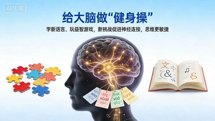 学习新语言、尝试新爱好、玩益智游戏,不断给大脑“新挑战”,能有效促进神经连接,就像给大脑做“健身操”。