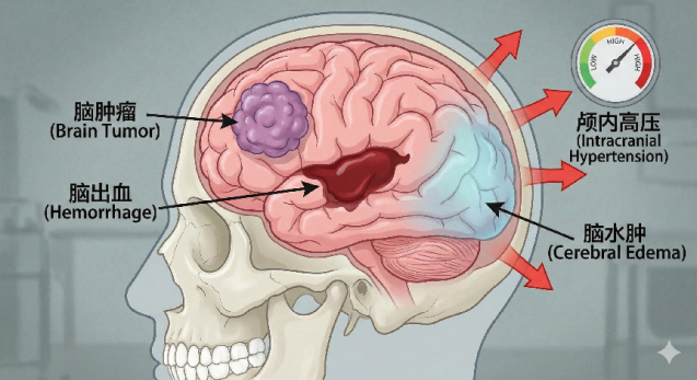 因为颅骨这个“房间”是不会变大的,新来的“客人”占了地方,原住民的空间就会被无情压缩。颅内的压力开始飙升,大脑组织被挤压得喘不过气来。这就是颅内高压。