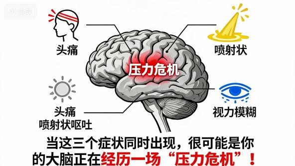 如果你的头痛越来越重,痛到让你恶心想吐,而且这种呕吐是突然的、呈喷射状的,甚至你还发现看东西变得模糊了。请注意,这绝不是普通的偏头痛或感冒,这很可能是你的大脑正在拉响最高级别的“防空警报”——颅内高压(increased intracranial pressure,ICP)。