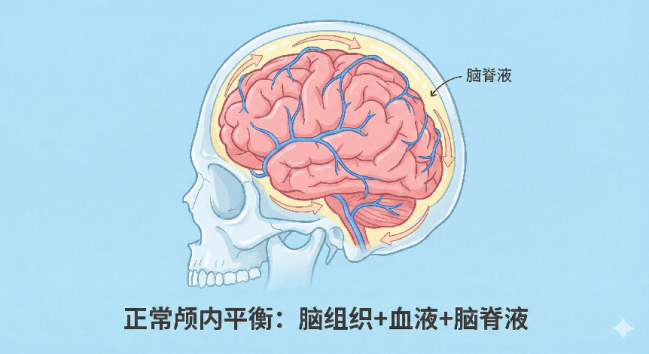 要理解什么是颅内高压,我们先把大脑想象成一个坚硬的、容积固定的“密室”——我们的颅骨。在这个密室里,住着三位常驻居民,它们维持着一种微妙而精密的平衡: