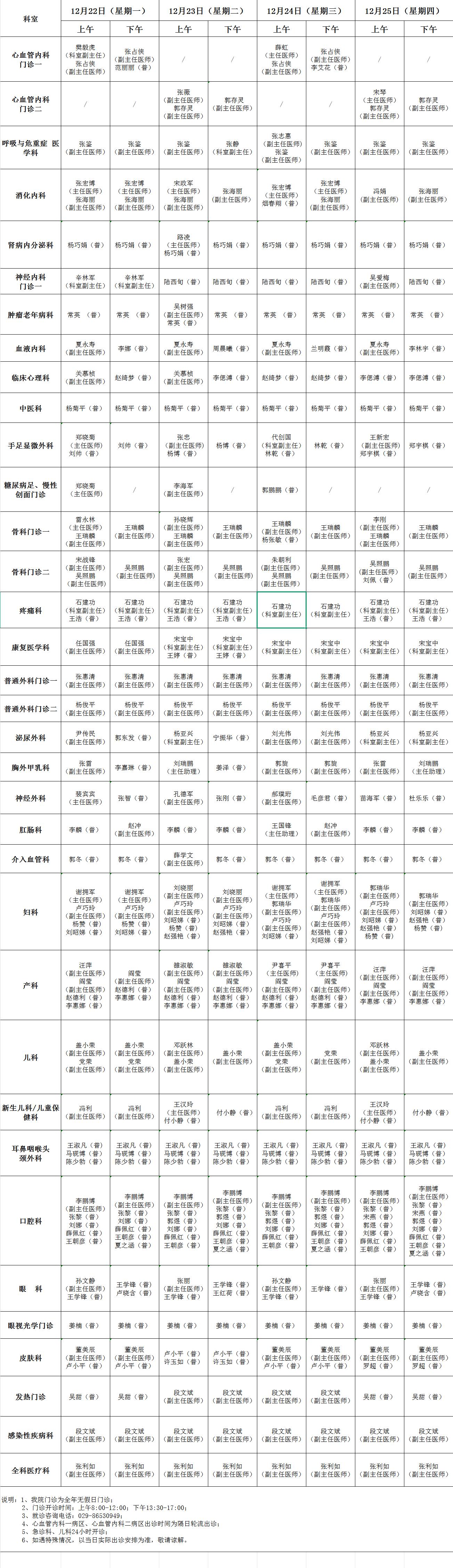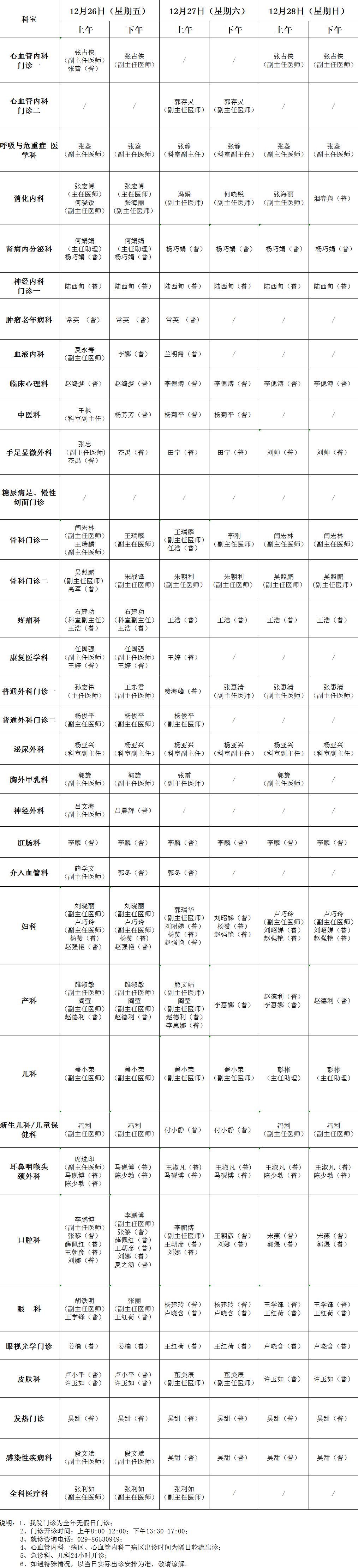 上一篇:2025年12月29日至2026年1月4日门诊医生出诊表